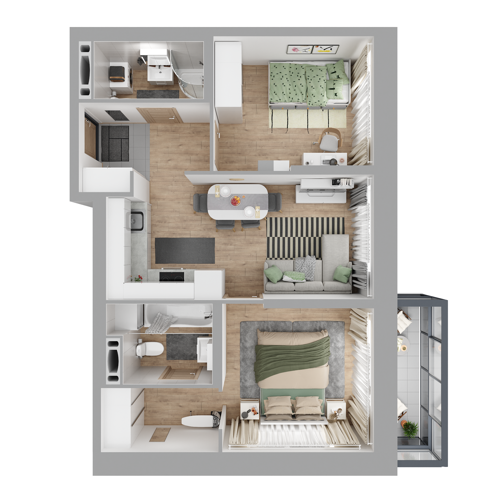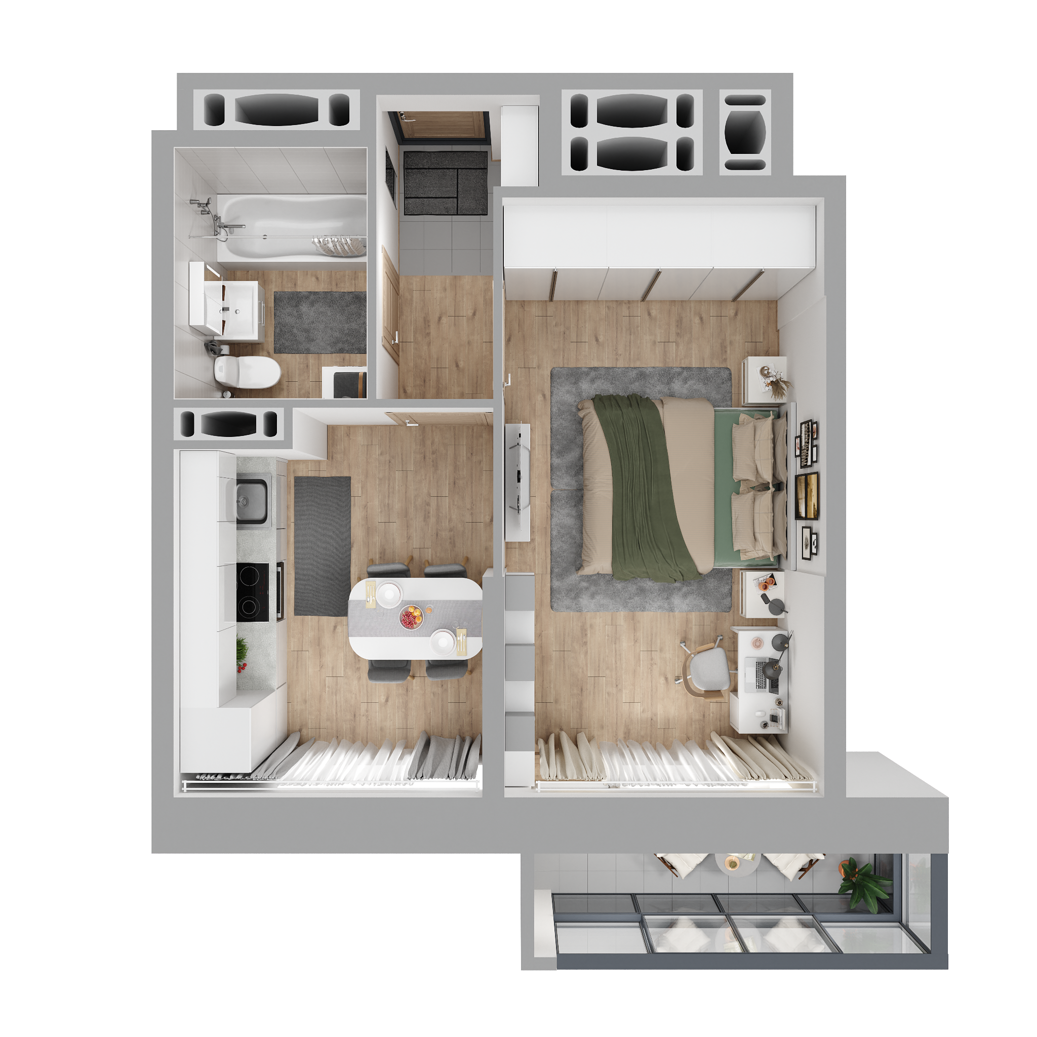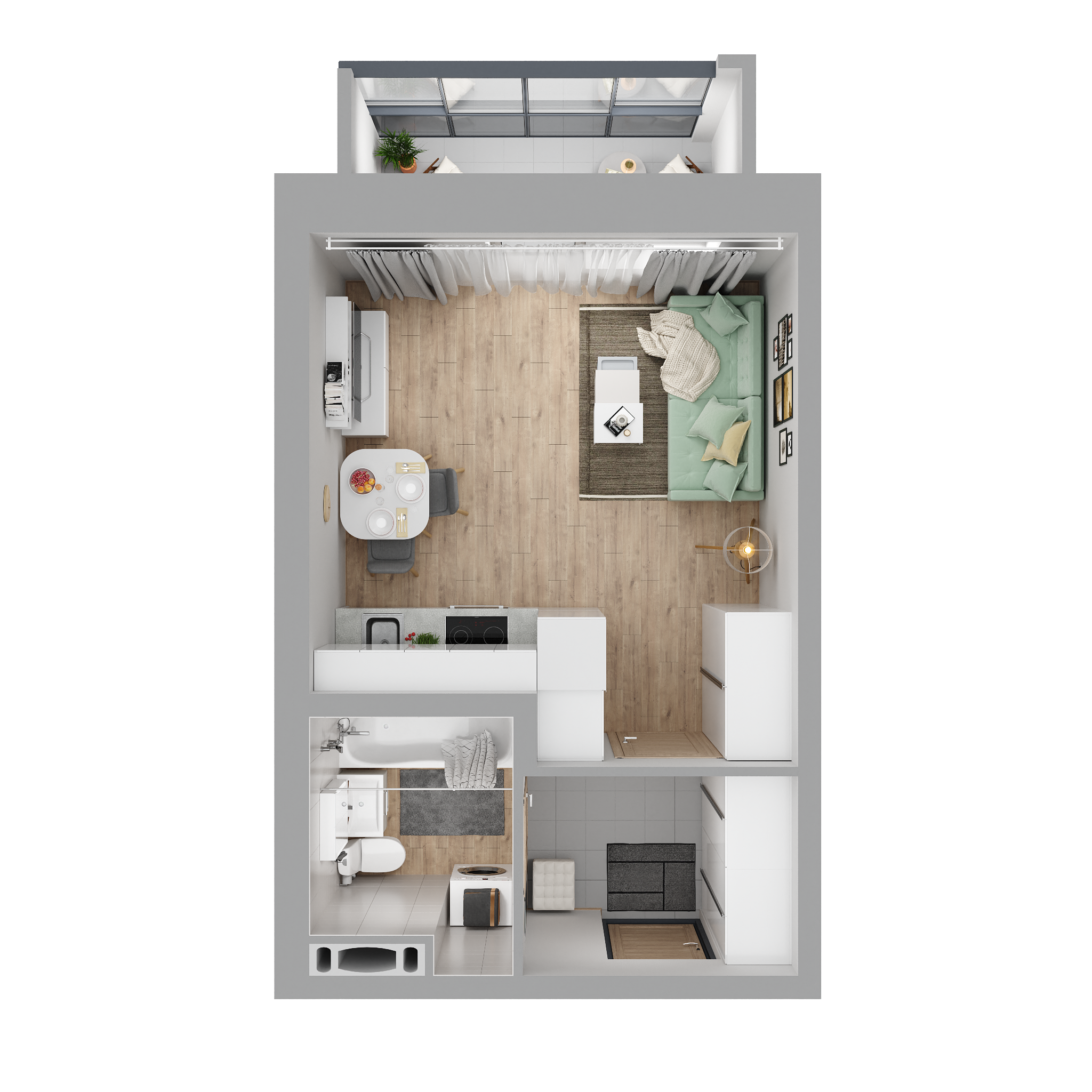 - функциональное зонирование помещения
