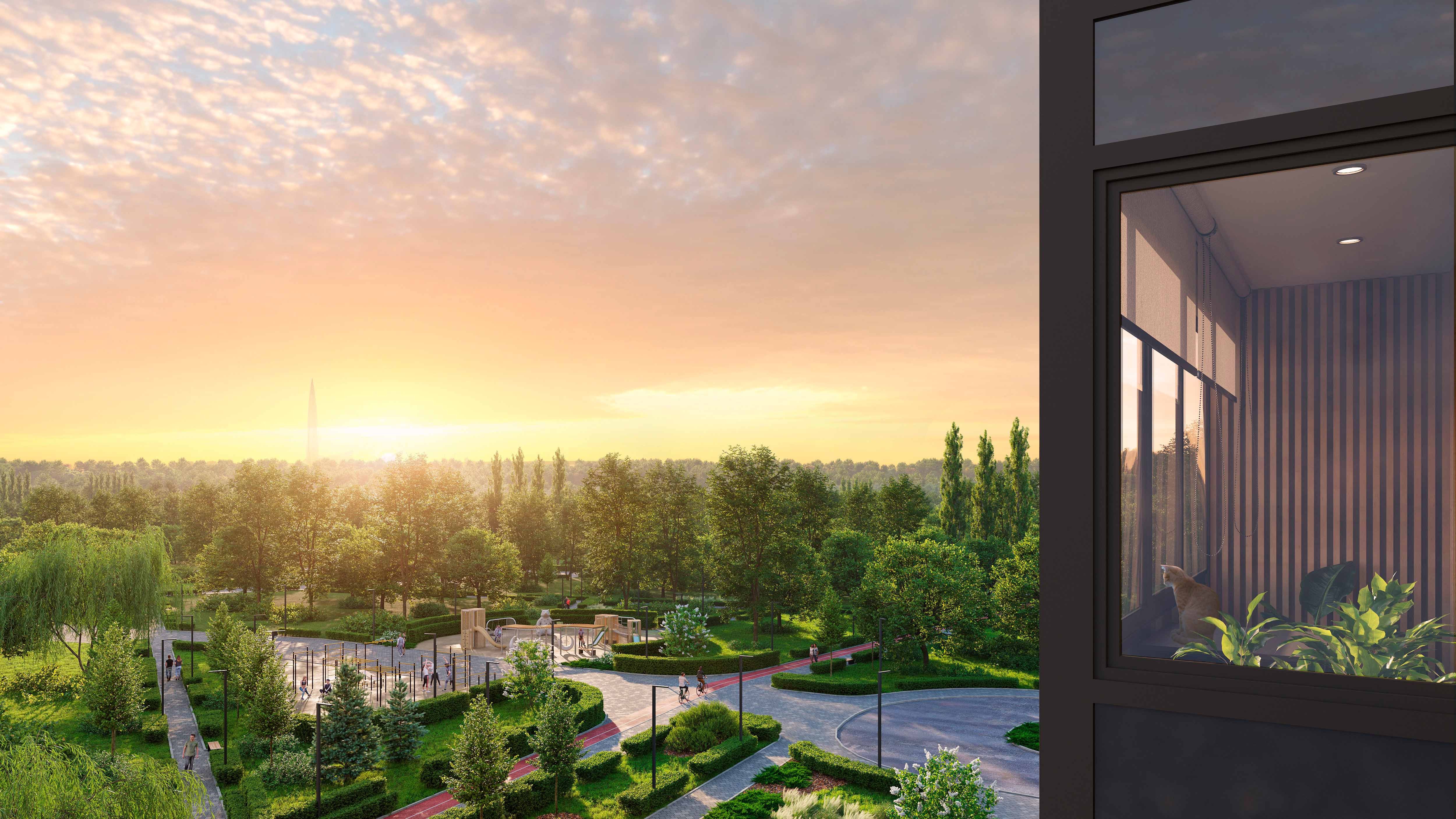 Жить в окружении зелени, просыпаясь под шелест листьев и пение птиц, наблюдать за сезонными перевоплощениями природы за окном и наслаждаться чистым воздухом. Вдумчивые прогулки по зеленым аллеям или же пробежки по экотропам Юнтоловского заказника.