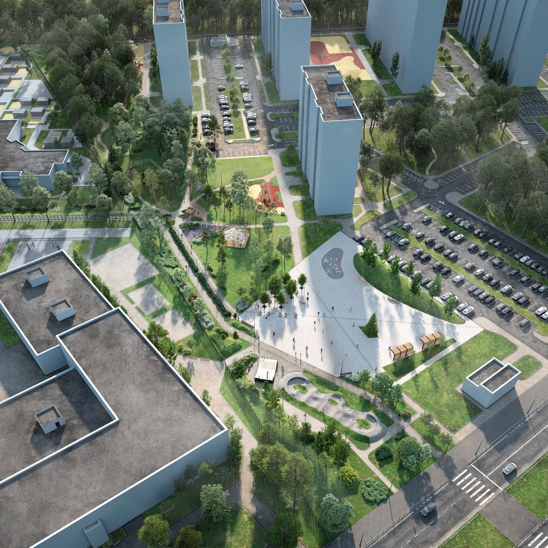 Общественное пространство будет организовано между пятой и шестой очередью экорайона «Юнтолово» и займет площадь порядка 16,4 тыс. м². В новой локации для активного семейного отдыха будет открыто сразу несколько спортивных зон: воркаут-площадка с турниками, деревянный настил с навесом для йоги, а также трюковая рампа для скейтбординга и памп-трек – трасса для заездов на самокатах и беговелах.